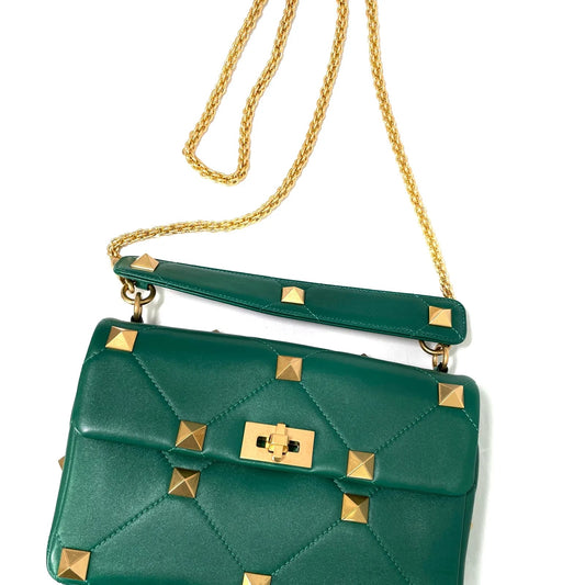 Valentino Green Leather Bag Top Handle Gold Chain